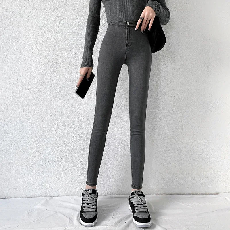 Get Stylishly Slim with Our 90s Super Stretch Gray Denim Skinny Jeans - Elevate Your Wardrobe Today!